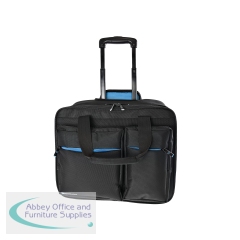 Monolith 15.6 Inch Blueline Wheeled Laptop Case Black/Blue 3317. Laptop case with durable trolley wheels. Lockable silver trolley handle. Concertina File Storage. Quick access front cable/storage pockets. Secure padded latop pocket.