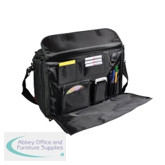Monolith Soft-Sided Polycanvas Pilots Case. Full width zipped front workstation/organiser section. Removable internal divider. Detachable shoulder strap. Two internal pockets and rear zipped compartment. W480 x D200 x H330mm.