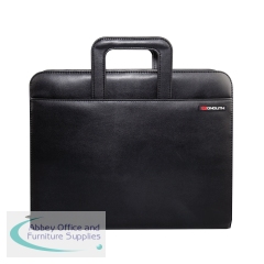 Monolith Executive Leather Zipped Folio Ring Binder. Executive bonded leather zipped folio with suede lining a 4-ring binder mechanism and internal pockets for documents CDs and business cards. Dimensions: W300xD50xH363mm. Colour: Black.
