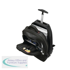 Padded compartment protects laptops up to 15.6in. Expandable for added capacity. Lockable zippers for added security. Dimensions: W310xD130xH450mm. Colour: Black.