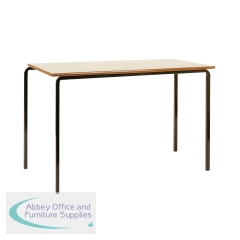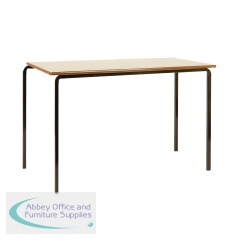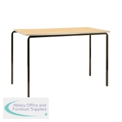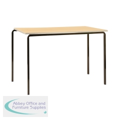 Jemini MDF Edged Class Table 1200x600x710mm Beech/Black (Pack of 4) KF74553. 18mm thick lacquered table top, laminated on both sides. Rounded corners/bevelled MDF edge for safety. Strong crush bent steel for durability. Dimensions (WxDxH): 1200x600x710mm.