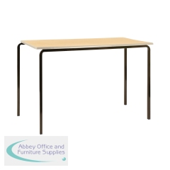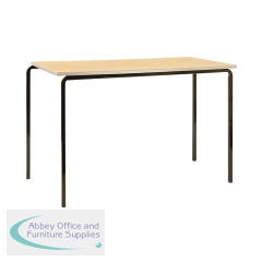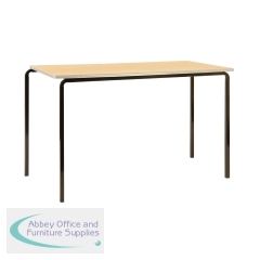 Jemini Polyurethane Edged Class Table 1200x600x710mm Beech/Black (Pack of 4) KF74565. 18mm thick lacquered table top, laminated on both sides. Rounded corners/injection moulded PU edge for safety. Strong crush bent steel for durability.