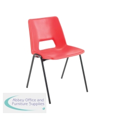 Jemini Stacking Chair 490x475x725mm Polypropylene Red KF74961. Polypropylene chairs stack up to 20 high. Moulded one piece seat and back. Epoxy coated 19mm diameter steel frame. Suitable for both indoor and outdoor use. Non-returnable.