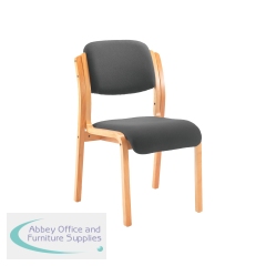 Jemini Wood Frame Side Chair 640x640x845mm Charcoal KF78680. Comfortable and stylish reception chair. Can be stacked 4 high for storage. Maximum sitting time: 8 hours. Seat dimensions: W420xD500mm. Back dimensions: W410xH300mm. Seat height: 480mm.