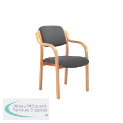 Jemini Wood Frame Arm Chair 700x700x850mm Charcoal KF78681. Comfortable and stylish reception chair. Can be stacked 4 high for storage. Maximum sitting time: 8 hours. Seat dimensions: W460xD510mm. Back dimensions: W410xH300mm. Seat height: 480mm.