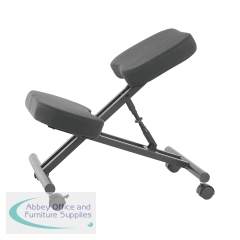 Jemini Kneeling Chair Black 800x200x480mm KF78705. Ideal for promoting good posture. Steel construction with black epoxy coating. Fitted with four castors. Weight capacity: 15 stone. Non-returnable.