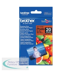 Brother Gloss Photo Paper 4 x 6 Inch (Pack of 20) BP71GP20. Glossy, premium plus photo paper for inkjet printers. Size: 100x150mm (4x6 inches). Produce crisp, clean prints. Pack of 20 sheets.