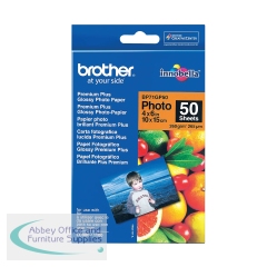 Brother BP71 Gloss Photo Paper 6x4 BP71GP50. Glossy, premium plus photo paper for inkjet printers. Size: 100x150mm (4x6 inches). Produce crisp, clean prints. Pack of 50 sheets.