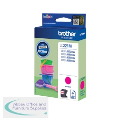 Brother LC221M Inkjet Cartridge Magenta LC221M. Page yield: up to 260. Compatible with: DCP-J562DW/MFC-J480DW/MFC-J680DW/MFC-J880DW. Standard yield. Original Brother inkjet cartridge.