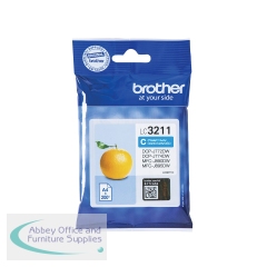 Brother LC3211C Inkjet Cartridge Cyan LC3211C. Page yield: up to 200. Compatible with DCP-J772DW/J774DW/MFC-J890DW/J895DW. Standard yield. Original Brother inkjet cartridge.