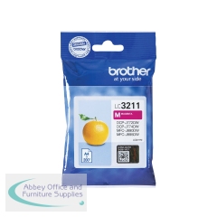 Brother LC3211M Inkjet Cartridge Magenta LC3211M. Page yield: up to 200. Compatible with DCP-J772DW/J774DW/MFC-J890DW/J895DW. Standard yield. Original Brother inkjet cartridge.
