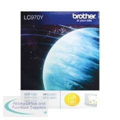 Brother LC970Y Inkjet Cartridge Yellow LC970Y. Page yield: up to 300. Compatible with: MFC-235C/260C/DCP-135C/150C/153C/157C. Standard yield. Original Brother inkjet cartridge.