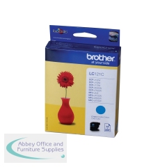 Brother LC121C Inkjet Cartridge Multipack Cyan LC121C. Page yield: up to 300. Compatible with Brother DCP-J132W/152W/552DW/752DW/MFC-J470DW/650DW/870DW. Standard yield. Original Brother inkjet cartridge.