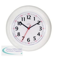 Acctim Aylesbury Office Wall Clock White 25.5cm 92/301-24. 12 / 24 Hour Dial. Different Coloured Hands. Quartz Movement. Diameter: 25cm. Colour: White.