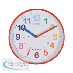 Acctim Wickford Time Teaching Clock Red Edging 22524. Time teaching clock. Quartz movement. Multi-coloured numbers. Blue and red hands. Colour: White/Red.