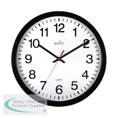 Acctim Controller Wall Clock. Black case with numbered white dial. Precision quartz clock movement. Silent second hand. Face diameter: 368mm. Requires 1xAA battery (not included).