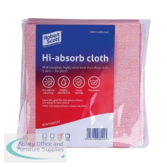 Robert Scott Hi-Absorb Microfibre Cloth Red. Made from polyurethane coated microfibre for high absorbency. Use damn on a variety of surfaces. Pack of 5.