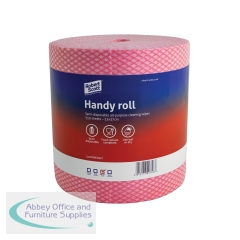 Robert Scott Handy Roll 350 Sheets Red 104628R. All-purpose cleaning wipe for use wet or dry. Semi-disposable. Food contact safe. Made from polyester with hydrophilic agent for superior absorbency. Non-woven. Size: 220x370mm. 350 sheets per roll. Pk 2.