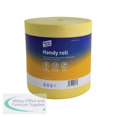 Robert Scott Handy Roll 350 Sheets Yellow 104628Y. All-purpose cleaning wipe for use wet or dry. Semi-disposable. Food contact safe. Made from polyester with hydrophilic agent for superior absorbency. Non-woven. Size: 220x370mm. 350 sheets per roll. PK 2.