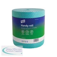 Robert Scott Handy Roll 350 Sheets Green (Pack of 2) 104628G - 2. All-purpose cleaning wipe. Use wet or dry. Semi-disposable. Food contact safe. Made from polyester with a hydrophilic agent. Non-woven. Cloth size: 220x370mm. 350 sheets per roll.