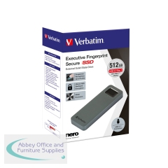 Verbatim Executive Fingerprint Secure Hard Drive USB 3.2 Gen 1 USB-C 1TB Grey 53652. Fingerprint recognition (max 8 users). Premium 256-bit AES hardware security encryption. 5 Gbps. USB-C to USB-A cable and USB-C adapter. Nero Backup Software included.