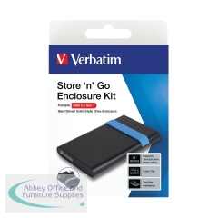 Verbatim Store N Go 2.5 Inch Hard Drive Enclosure Kit USB 3.2 Black 53106. Fits all 2.5 inch internal SATA HDD/SSD (up to 9.5mm high). Plug and play. 5Gbps for fast data transfer. USB 3.2 Gen 1 interface (compatible with USB 2.0). LED activity indicator.