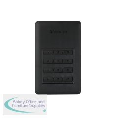 Verbatim Secure Portable HDD with Keypad Access 2TB 53403. Encrypted portable USB-C hard drive. 256-bit AES hardware encryption. Passcode protected. Lightweight and portable design. Capacity: 2TB.