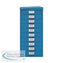 Bisley 10 Multidrawer Cabinet 279x380x590mm Azure Blue BY78740. 10x51mm deep. Ideal for storing small items and stationery. Non-locking. This item is made to order and cannot be cancelled or returned once the order is placed. Non-returnable.