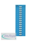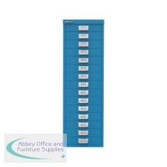 Bisley 15 Multidrawer Cabinet 279x380x860mm Azure Blue BY78741. 15x51mm deep. Ideal for storing small items and stationery. Non-locking. This item is made to order and cannot be cancelled or returned once the order is placed. Non-returnable.