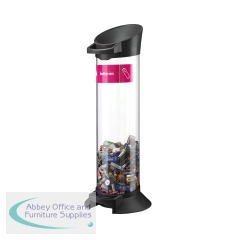 Battery Tube Recycling Bin 20L Black 426346. For used batteries. Clear plastic tube. Facility to contribute to environmental protection. Dimensions: W310 x D310 x H830mm.