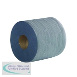 Centre-feed hand towel roll for dispensers. Blue colouring ideal for catering use. Quality two-ply tissue. Designed for centre-feed dispensers. Pack of 6x 150 metre rolls.