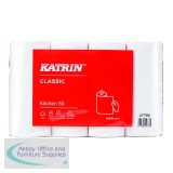 Katrin Kitchen Towel Paper Roll 2-Ply 64 Sheets White 8x4 (Pack of 32) 87075. Soft and absorbent. Extra soft and highly functional. Approved for food contact. 64 sheets per roll. Each pack contains 4 rolls, there are 8 packs with 32 rolls in total.