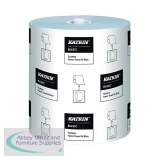 Katrin Basic System Towel M 1-Ply Blue. Absorbent recycled fibre paper for effective drying. 1-ply flat sheets are fed out of the roll in the right size. Zero wastage with all the roll used up.