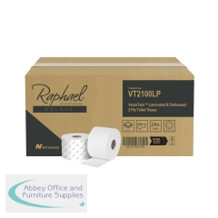 Raphael 2-Ply VersaTwin Micro Jumbo Pulp Toilet Roll 100m (Pack of 24) VT2100LPDS. 2-Ply large capacity toilet rolls. Fast breakdown in water. 270 Sheets. Made from pure wood pulp. Economical in use.