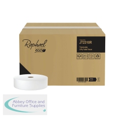 Raphael 1-Ply Twin Jumbo Toilet Roll 400m (Pack of 12) JT1400RDS. 1-Ply large capacity toilet roll. Fast breakdown in water. 1081 Sheets. Made from 100% recycled materials. Economical in use.