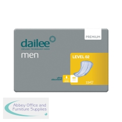Dailee Men Premium Incontinence Pads Level 2 (Pack of 15) I0700021. Dual leakage barriers. Fast absorption layer. Superior odour protection. Adhesive strips keeps the product securely in place. Anatomically shaped security for Men. Breathable back sheet.