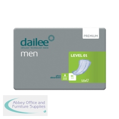 Dailee Men Premium Incontinence Pads Level 1 (Pack of 15) I0700019. Dual leakage barriers. Fast absorption layer. Superior odour protection. Adhesive strips keeps the product securely in place. Anatomically shaped security for Men. Breathable back sheet.