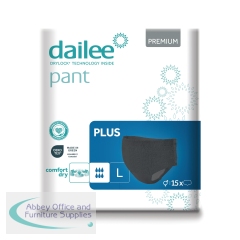 Dailee Comfort Premium Plus Incontinence Pads (Pack of 28) I0500005. Adhesive strip for secure fixation in Dailee Fix. Easy pull on and off. Dual leakage barriers to improve leakage protection and secure cup fit. Convenient wetness indicator.
