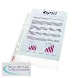 Q-Connect Deluxe Punched Pockets. Embossed anti-glare finish 75 micron high quality multipunched pockets suitable for most binders. Features reinforced Red strip edge and side opening. Size: A4.
