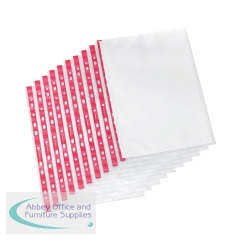 KF01123 - Q-Connect Delux Punched Pocket Side Opening Red Strip A4 (Pack of 25) KF01123