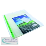 KF01121 - Q-Connect Delux Punched Pocket Top Opening Green Strip A4 Clear (Pack of 100) KF01121