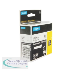 Industrial labelling tape. Designed for Rhino label makers. Made from extra strong polyester. Industrial-strength adhesive for heavy duty use. Compatible with Rhino 4200, 5200 and 6000. Prints black text on white. Width: 12mm. Supplied on 5.5m roll.