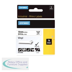 Industrial vinyl labelling tape. Designed for RHINO label makers. Made from strong viny. Industrial-strength adhesive. Easy peel. Compatible with RHINO 4200, 5200 and 6000. Prints black on white. Width: 19mm. Supplied on 5.5m roll.