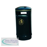 Removable body for ease of emptying. Hooded top prevents ingress of rainwater. Complete with inner liner lock and base. Capacity 75L. H1000x 485mm. Optional concrete base 3 parts. Optional fixing plate. Black Gold. Non returnable.