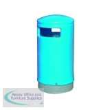 Removable body for ease of emptying. Hooded top prevents ingress of rainwater. Complete with inner liner lock and base. Capacity 75L. H1000x485mm. Optional concrete base 3 parts. Optional fixing plate. Blue. Non-returnable.