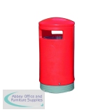 Removable body for ease of emptying. Hooded top prevents ingress of rainwater. Complete with inner liner lock and base. Capacity 75L. H1000x485mm. Optional concrete base 3 parts. Optional fixing plate. Red. Non-returnable.