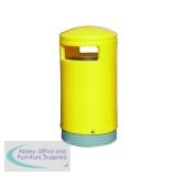 Outdoor Hooded Top Bin 75 Litre Yellow 321774. Removable body for ease of emptying. Hooded top bin prevents ingress of rainwater. Complete with an inner liner, lock and base. Height: 1000mm. Diameter: 485mm. Polyethylene with a galvanised steel liner.