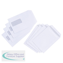 Plain white envelopes with address window. Crisp 90gsm white paper. Self-adhesive flap. Suitable for A5 or folded A4 documents. C5. Pack of 500.