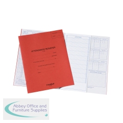 Cutaway pages - pupil\'s name only has to be written once. Daily weekly monthly and term totals. 50 entries 3 terms 5 days Mon - Fri. 70gsm white paper and a red manilla cover. Size: 326 x 205mm. 24 pages.