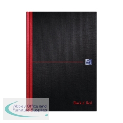 Black n\' Red Casebound Book. Fully casebound notebook with bound writing pages sewn into the spine. Size A5 210x148mm. 192 pages. Ruled. Pack 5.